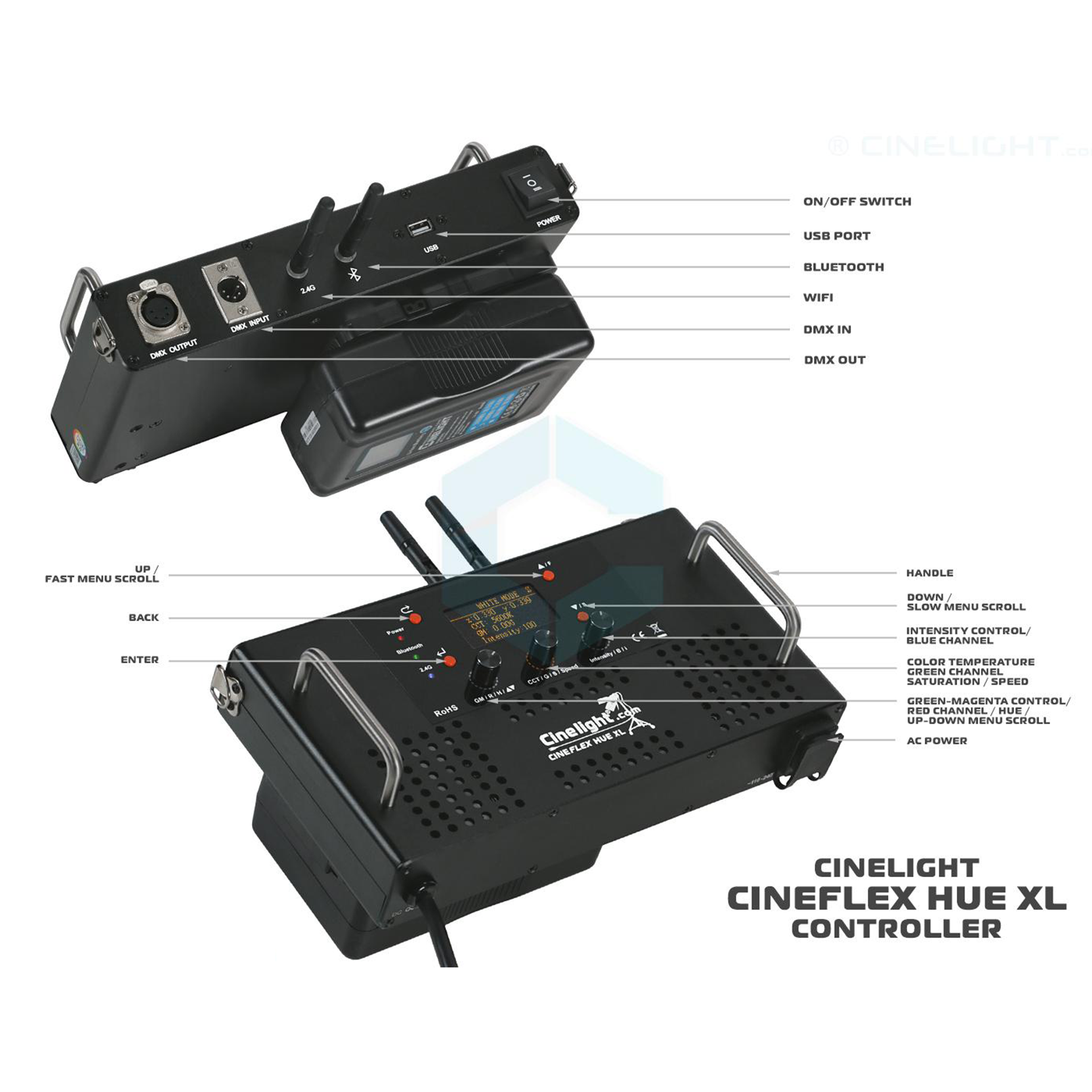 - Multiple controls: CCT, HSI, RGB, XY,