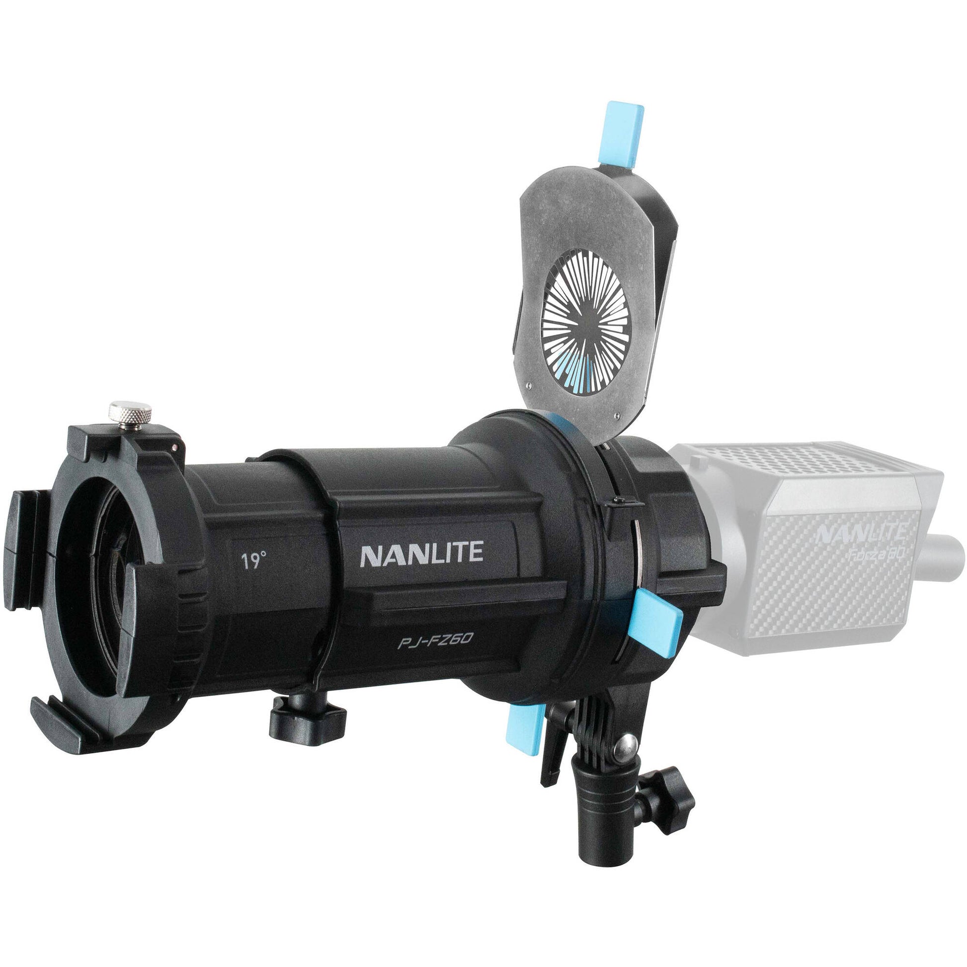 Expertly Crafted DetailsNanlite has gone to great lengths to ensure the light quality emitted by the Forza 60/60B Projector Mount. It utilizes non-curved lenses to eliminate aberration and minimize distortion, while optical metallic-membrane plating increases luminousness and color temperature accuracy. Finally, the internal walls of the housing are etched to reduce edge dispersion and fringing.Extra Durability and Heat DispersionThe Forza 60/60B Projector Mount's housing keeps heat absorption to a minimum through the use of nylon coated metal. Users can easily handle the projector after use, and the nylon design also keeps the fixture lightweight but still robust enough for travel.Control, Shape, and Layer Your LightFor maximum flexibility in light shaping and control, the Forza 60/60B Projector Mount features internal shutters and include four gobos, a gobo frame, and a gel frame. For even further control of the light's size and shape, an 18-bladed iris is available separately.Sturdy Protective CaseEvery Forza 60/60B Projector Mount ships in a purpose-built protective case created to stand up to the rigors of traveling to and from the set. It ensures your optics stay safe while still leaving space for additional accessories.