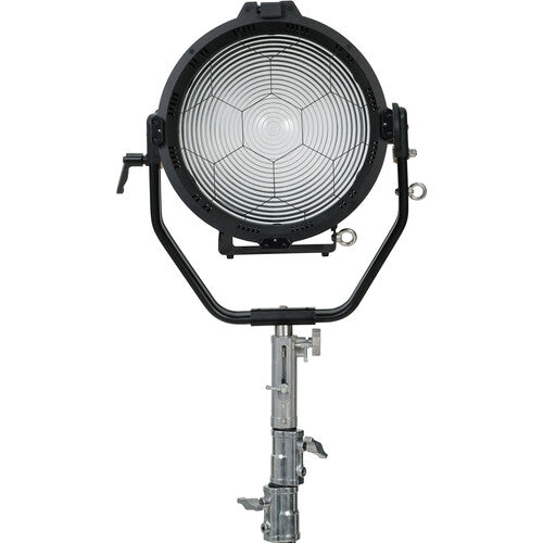 The glass Fresnel Lens with Offset Yoke from Nanlux is designed to sharply focus the beam spread of the Evoke 1200. The lens comes with 4-way barndoors, while the offset yoke allows easy tilting without obstruction by them.