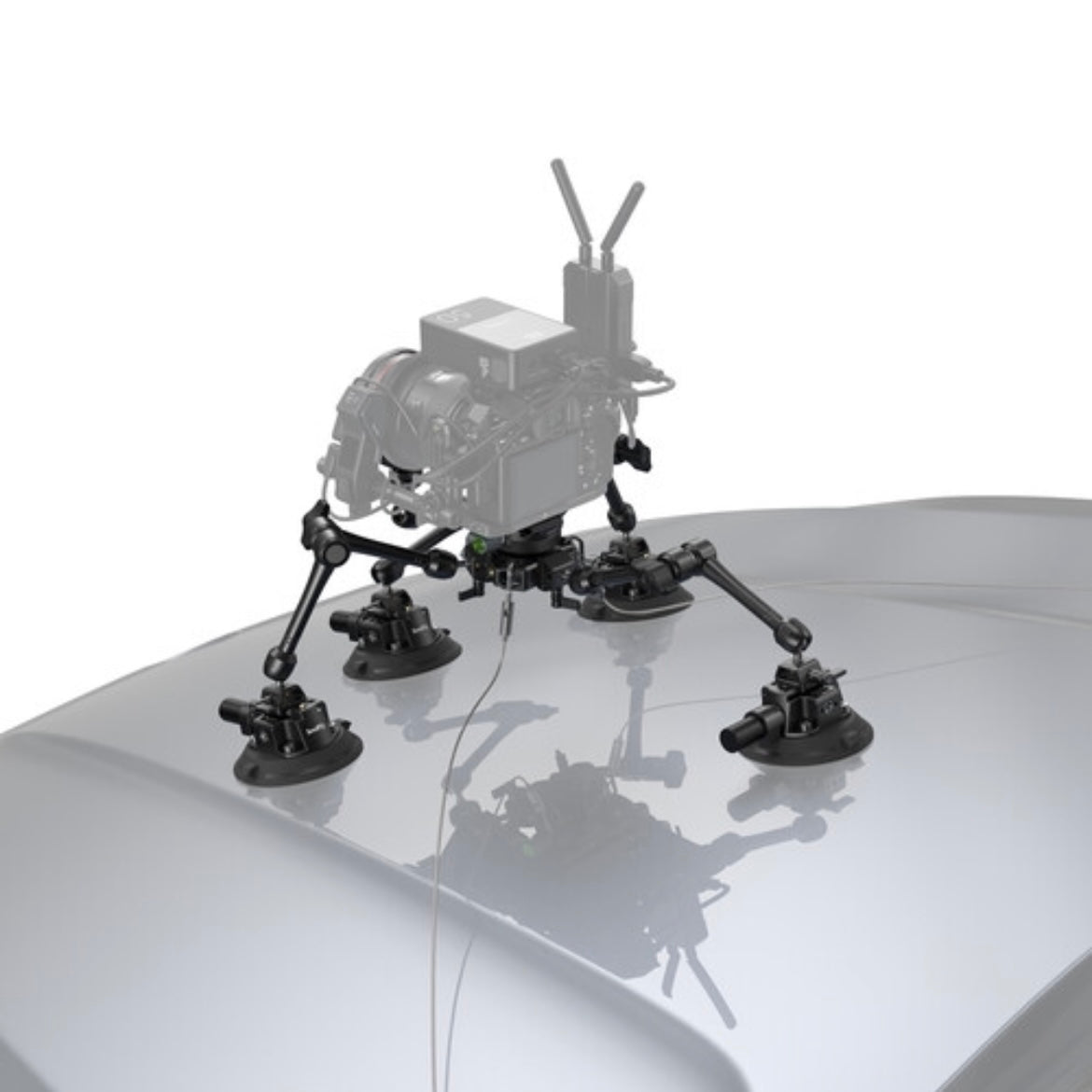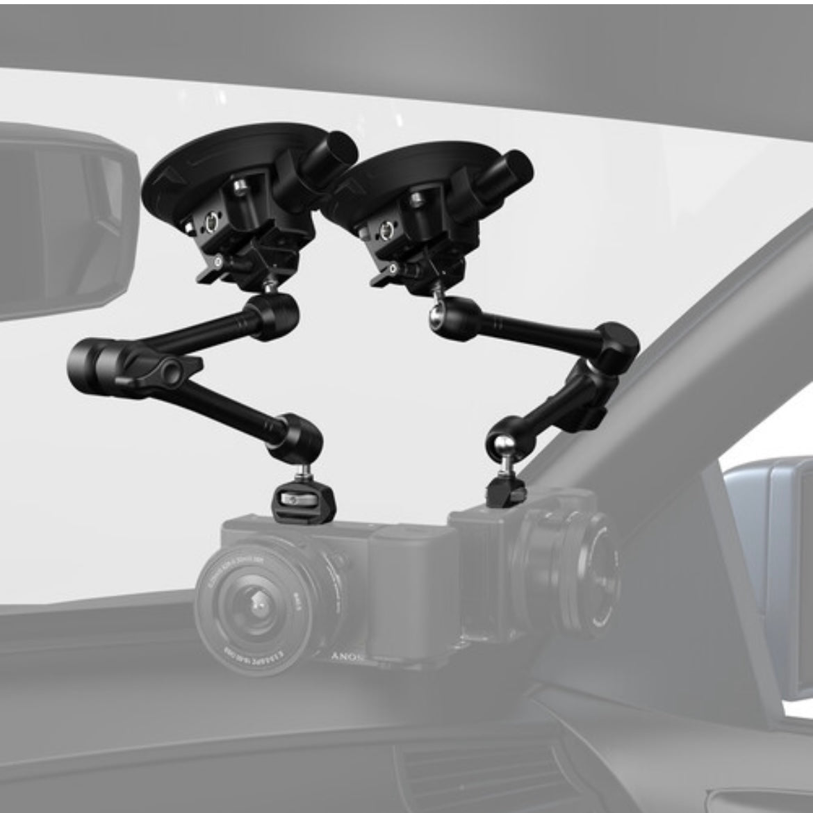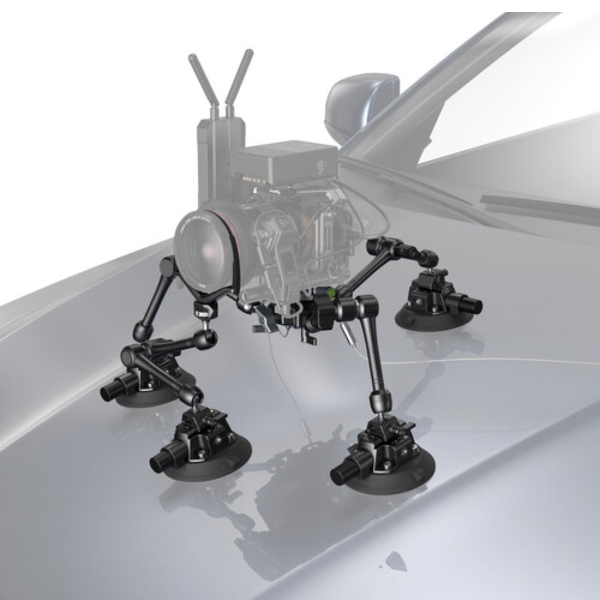 representerer en profesjonell og pålitelig løsning for kjøretøybasert fotografering. Med kraftig sugekraft har festet maksimalt horisontalt sug på 120 kg og maksimalt vertikalt sug på 30 kg. Sugekoppkamerafestet, med stor lufttetthet og slitestyrke, kan brukes ved -20°C til 60°C, egnet for rene, tørre, glatte og jevne buede overflater. Settet består av 4 sugekopper, 4 x 11" magiske armer, 1 linsestøtte, 1 halvkulehode og 2 kabelfester.