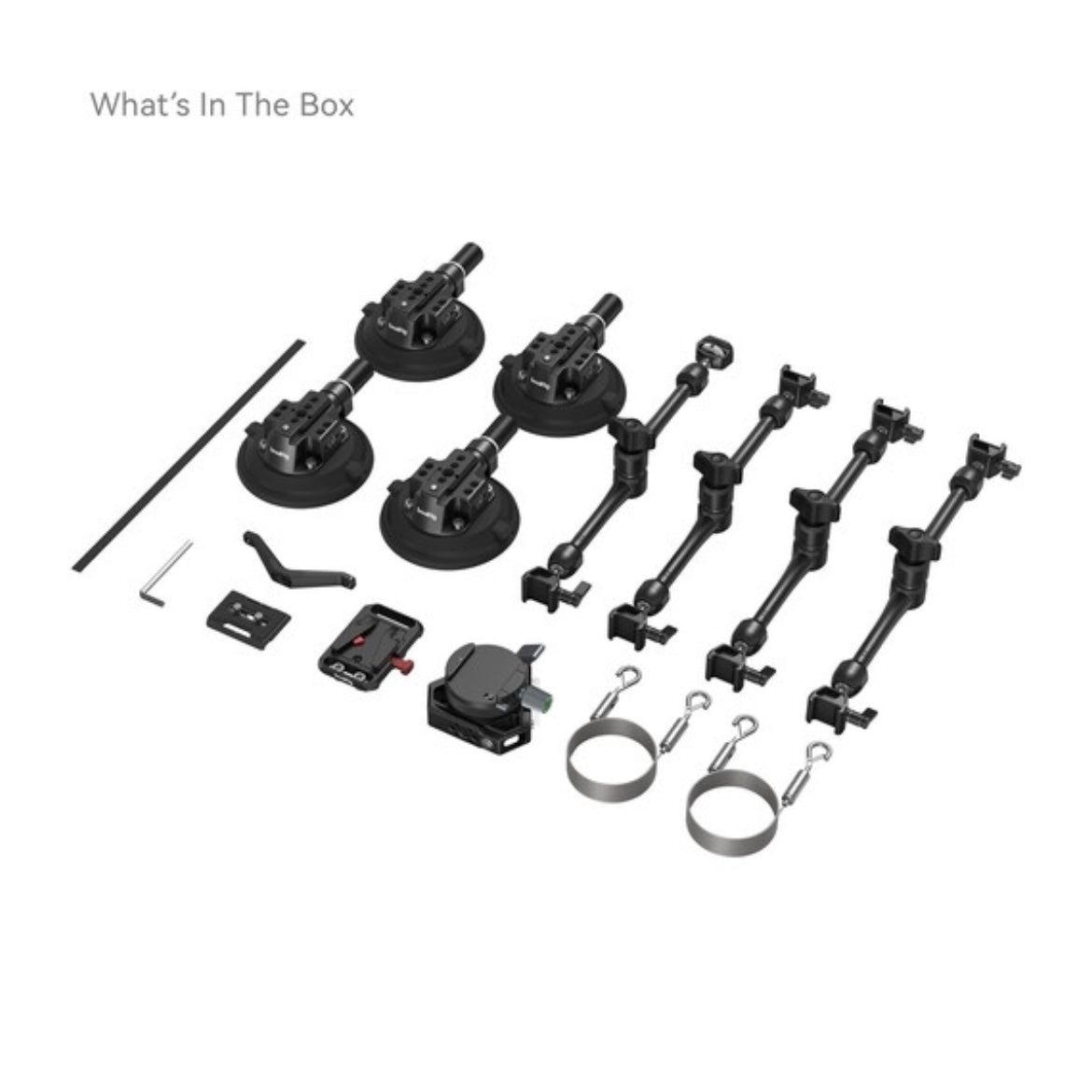 Blant dem fester sugekoppen raskt magisk arm via en NATO-klemme for å forhindre vridning; halvkulehodet, som er justerbart -8°/+8°, støtter Arca-Swiss og DJI RS stabilisator hurtigutløserplate for rask veksling mellom bil-, håndholdt og gimbal-skyting; og kabelfestet sørger for at utstyret ditt er trygt. Settet leveres også med en integrert oppbevaringsboks, som er motstandsdyktig mot støv, slitasje og regn i røffe utendørsmiljøer.
