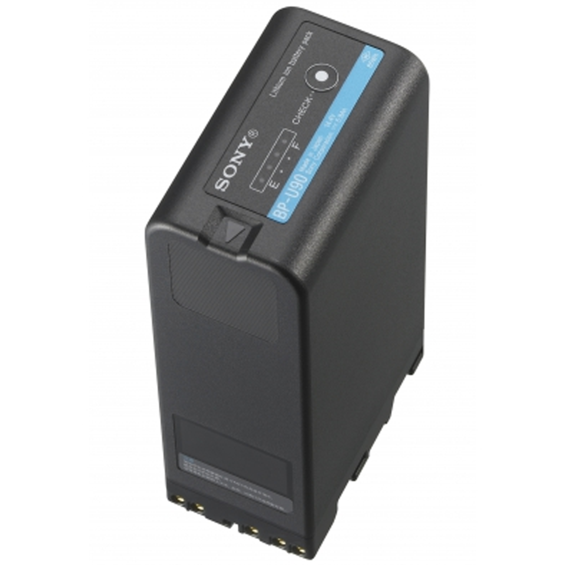 The Sony BP-U90 is a lithium-ion battery designed for professional video shooting in both the field and the studio. This battery is equipped with the INFO function that communicates battery status data to the PMW-EX1, fs7, fs5, fx6, fx9 camcorder.